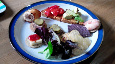However, this year for New Year's Day we had a little family party  and I spent the morning cutting up little squares of rye bread with pate, cheese or prawn toppings, making bruscetta, and filling bowls full of crisps.  Add to that a Lemon Tart (not home made) and some Christmas cake and we had an instant party.